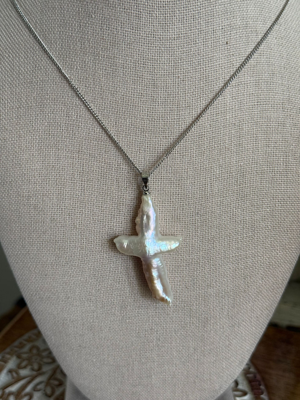 Large Pearl Cross Pendant Necklace